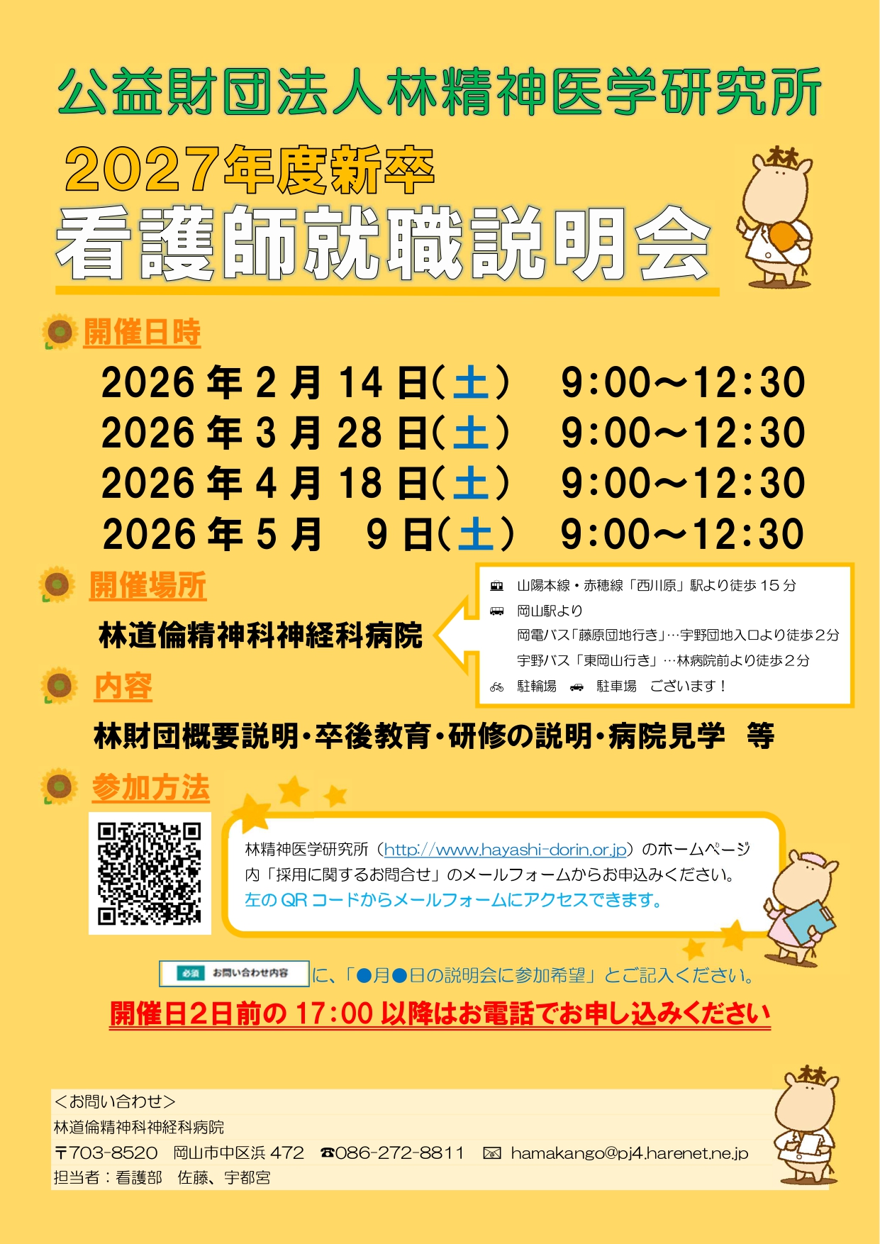 2027年度新卒看護師(2026年度卒業見込み)就職説明会のご案内